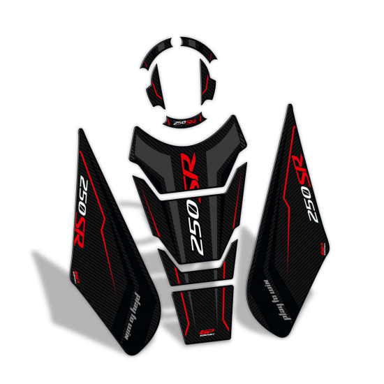GP Kompozit CF Moto 250 SR 2020-2023 Set Protezione Serbatoio Nero - Rosso